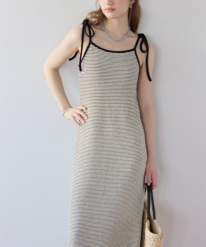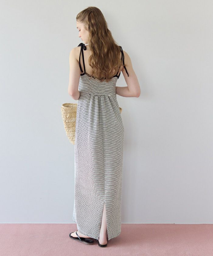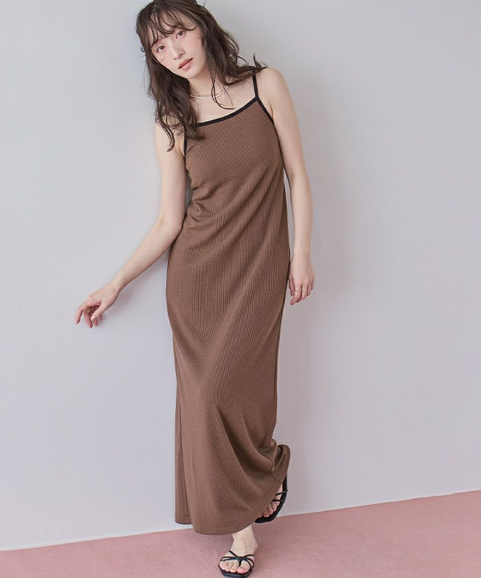 ・カップ付きで1枚でもさらりと着られるキャミソールワンピース。