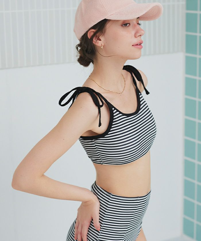 ・肩紐がリボンで大人可愛い、スポーティでシンプルな1枚です。