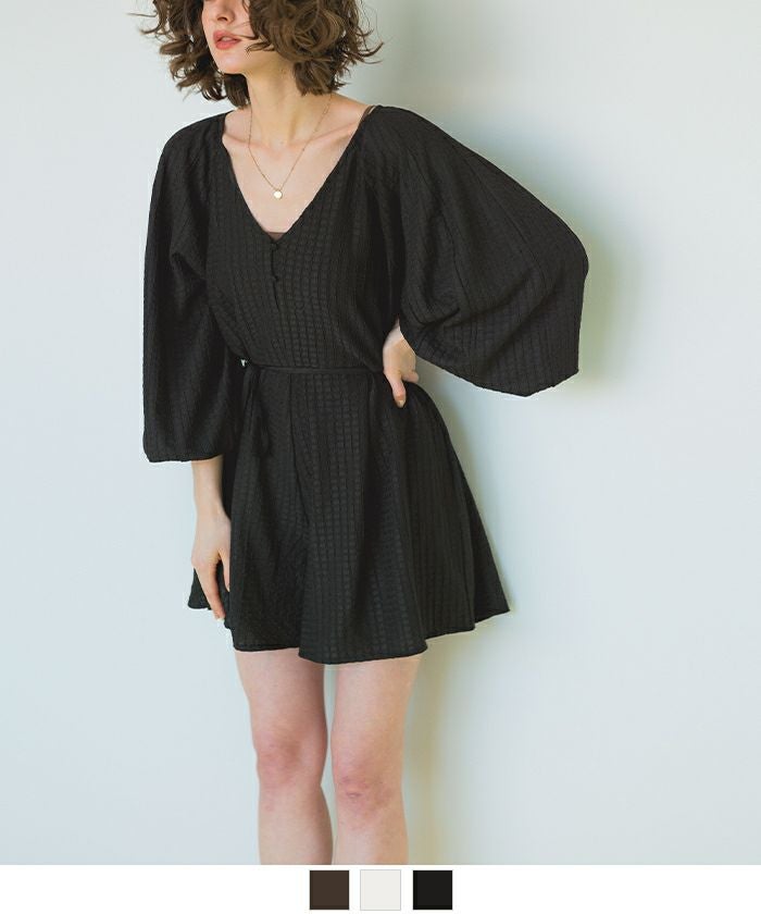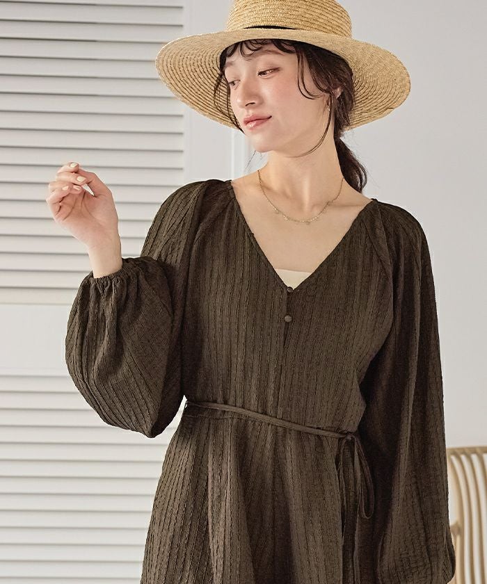 ・リボンでウエストマークして大人可愛くメリハリのあるシルエットに◎