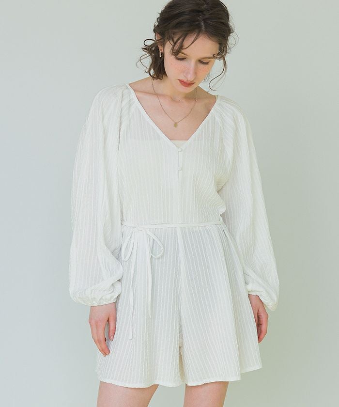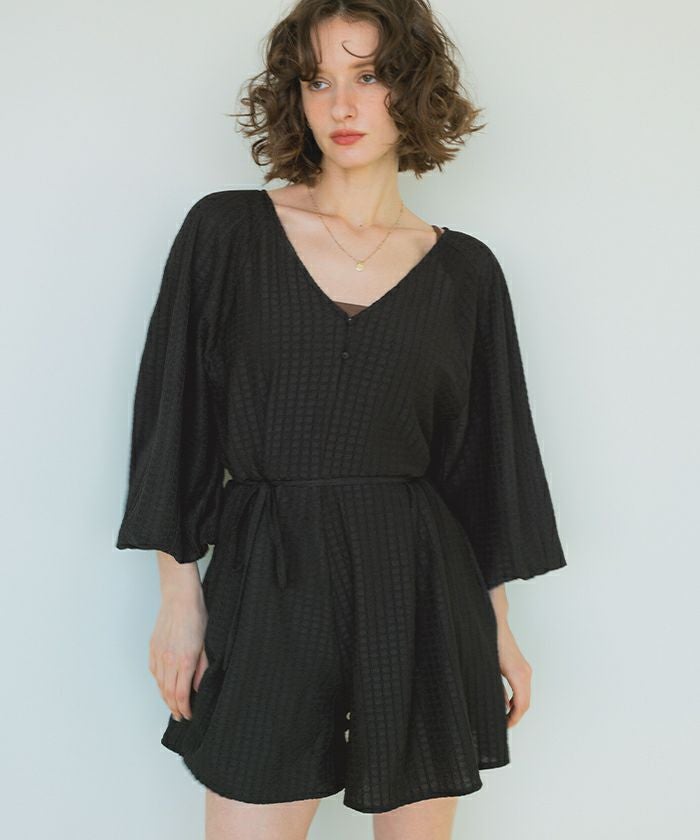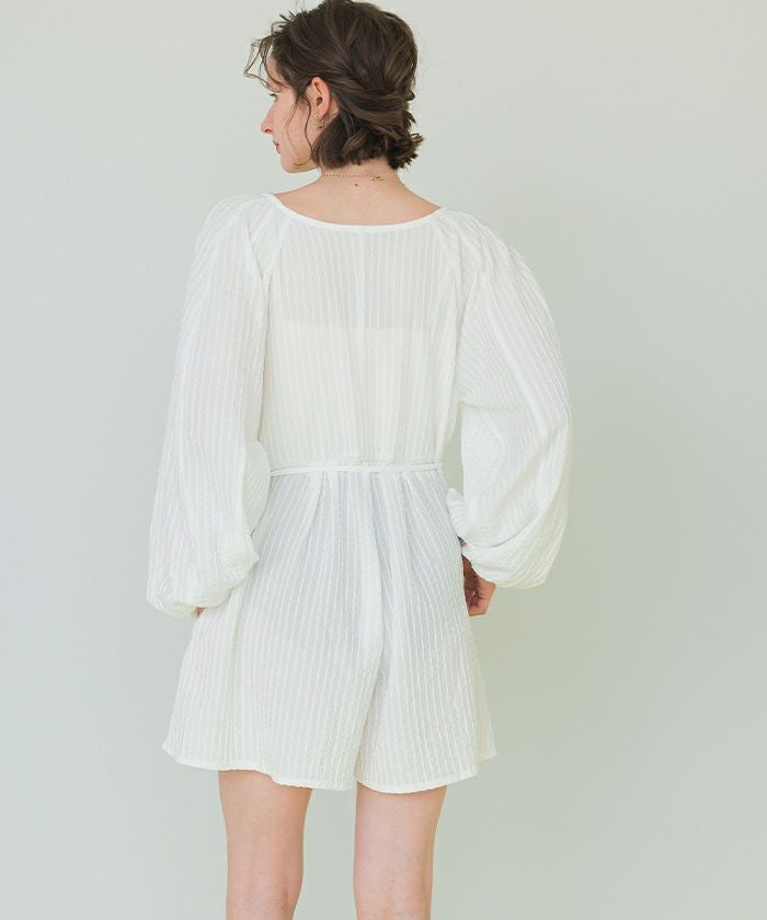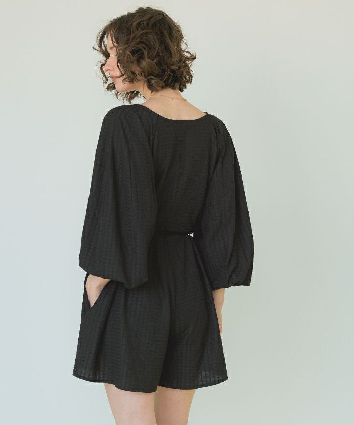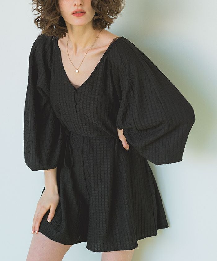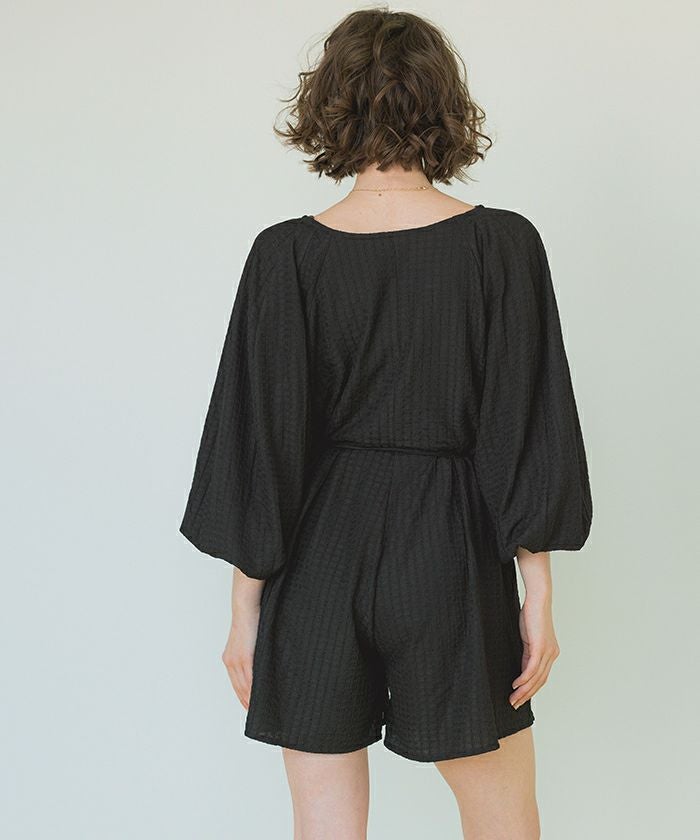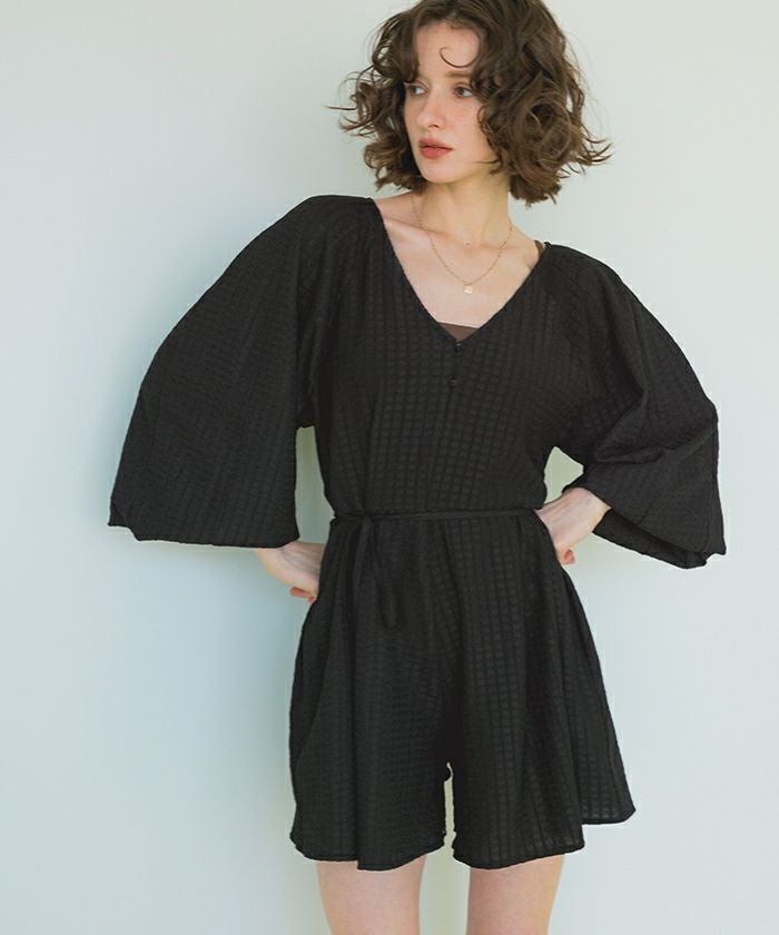 ・通気性も良く表面変化のある素材がこだわりのボリュームスリーブオールインワンラッシュガード。