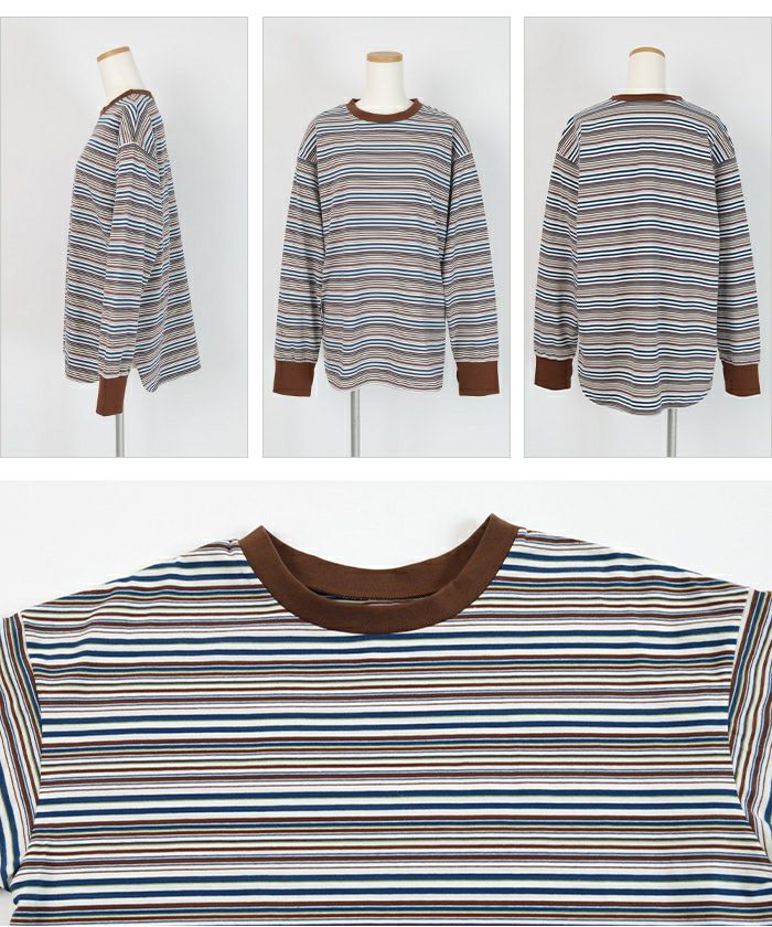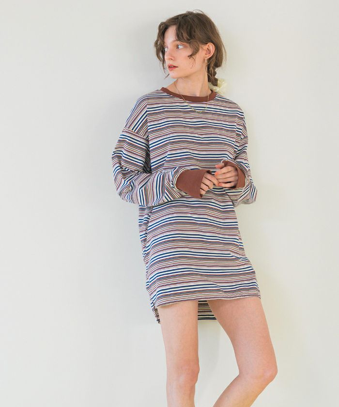 ・目を惹く細かなマルチボーダーがカジュアルなスタイリングを叶えます。