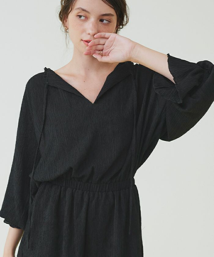 ・伸縮性が良く柔らかな着心地の素材感がポイント。