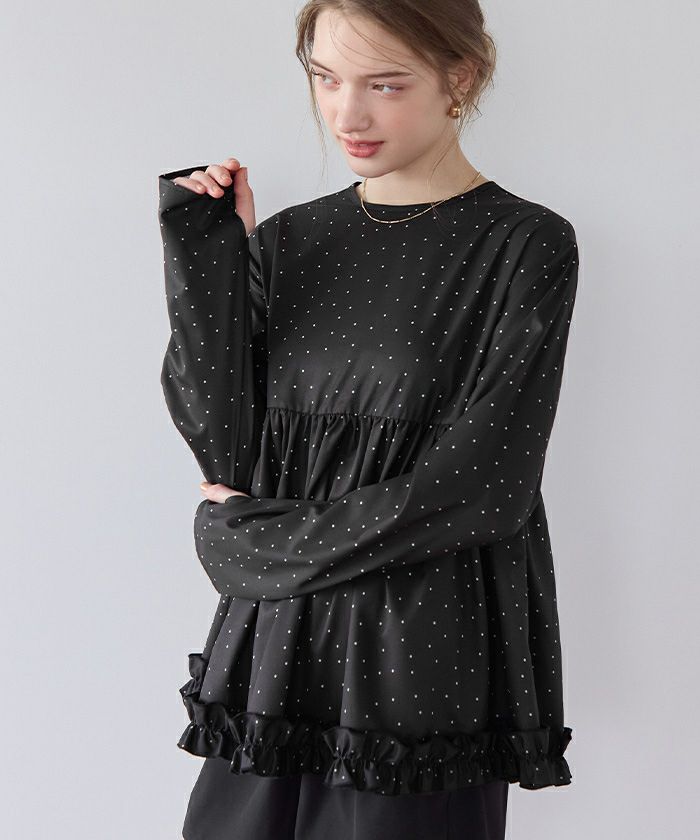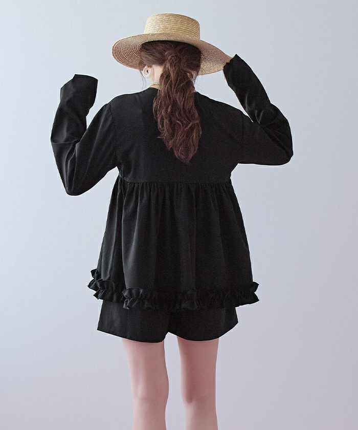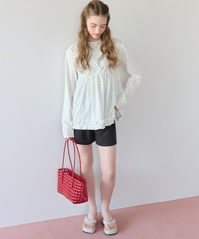 ・裾にはフリルをあしらい、甘さをプラスしつつ軽やかな雰囲気に。
