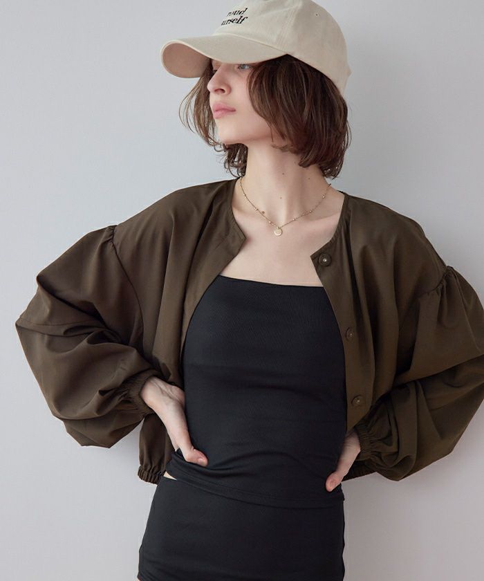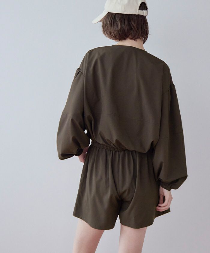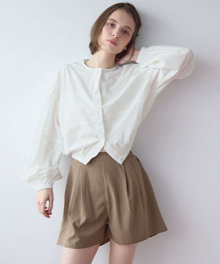 ・2点セットでコーデが完成する、ノーカラーのボリュームブルゾン×ショートパンツ。