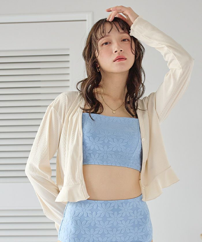 細リブフレアカーディガン/ラッシュガード【メール便可/70】