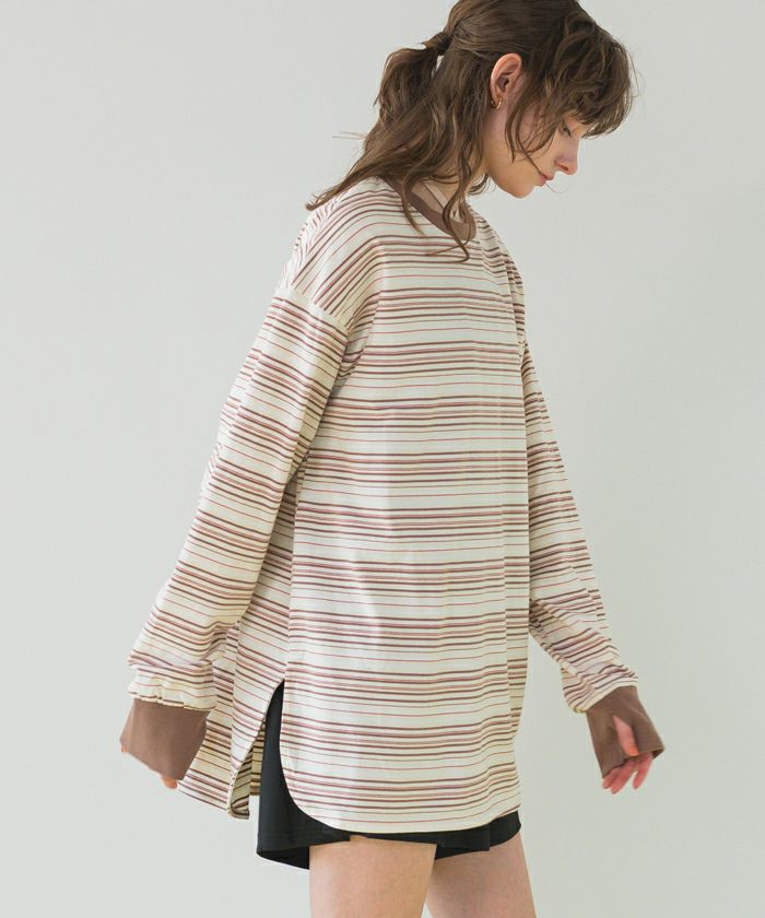 ・目を惹く細かなマルチボーダーがカジュアルなスタイリングを叶えます。