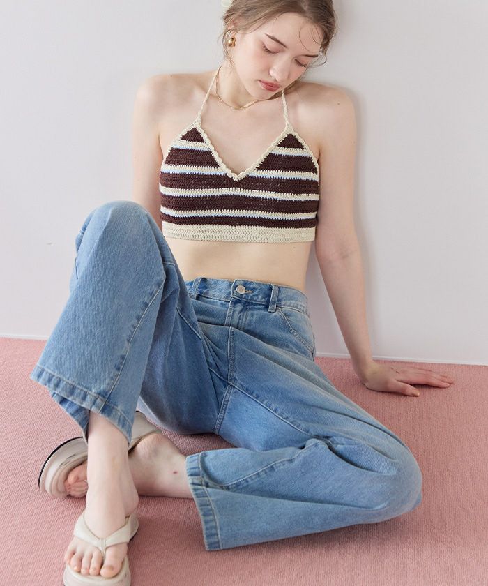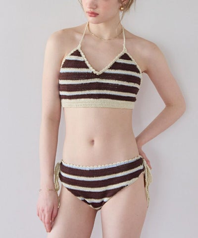 ・クロシェ編みの風合いが可愛いマルチボーダービキニ。