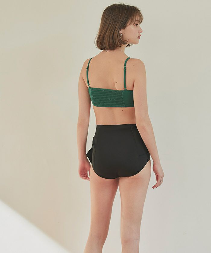 トップスはノンワイヤーなのでストレスフリーに着用でき、バックシャーリングデザインで着脱も簡単◎