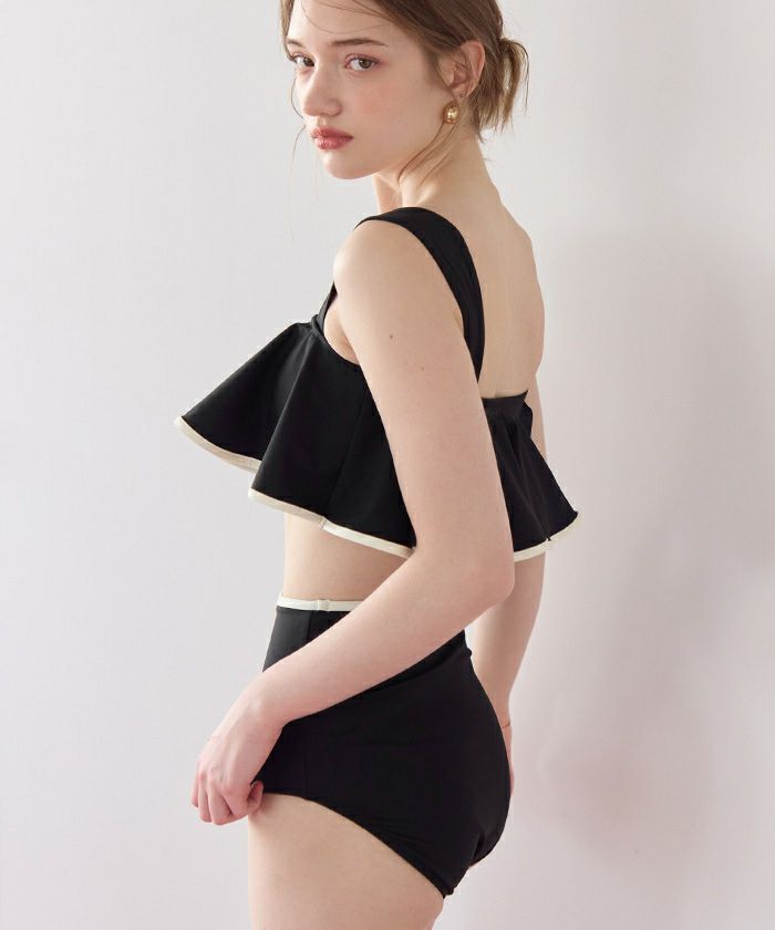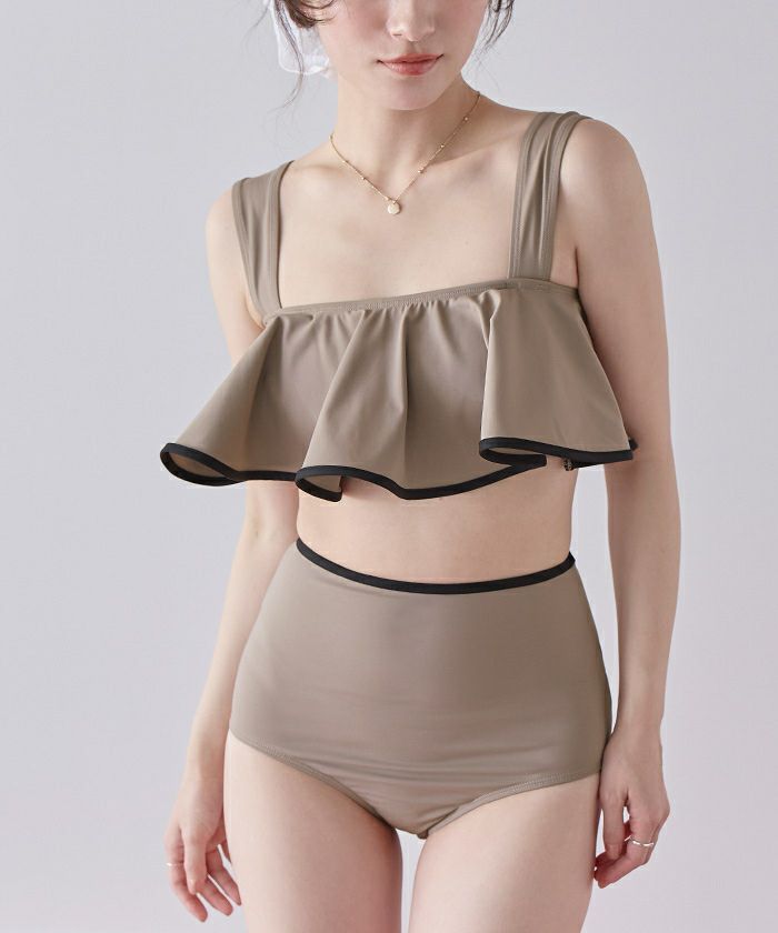 パイピングフリルハイウエストビキニ/水着【メール便可/100】