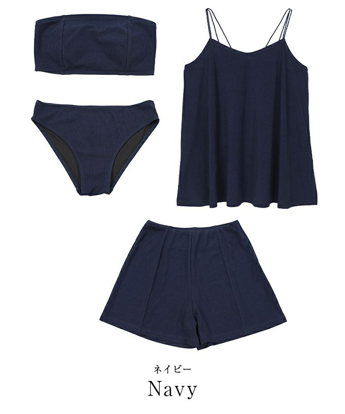 ・フレア感がきれいなAラインキャミソールとショートパンツ付きの4点セットシンプルビキニ。