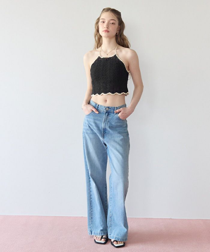 ・透け感のある編み地がヘルシーで抜け感のあるスタイルに◎。
