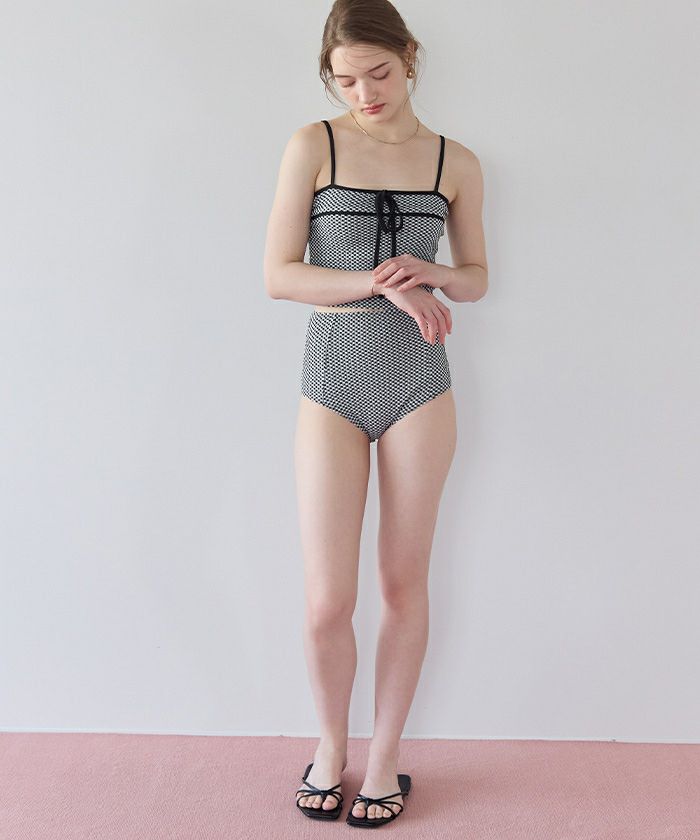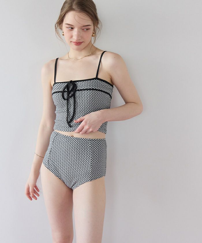 リボンデザインチェックジャガードビキニ/水着【メール便可/100】