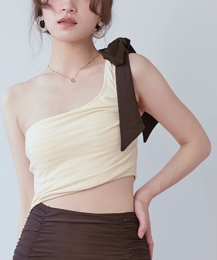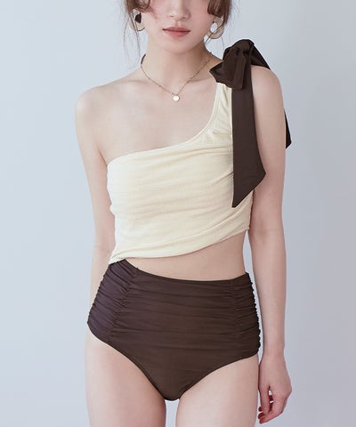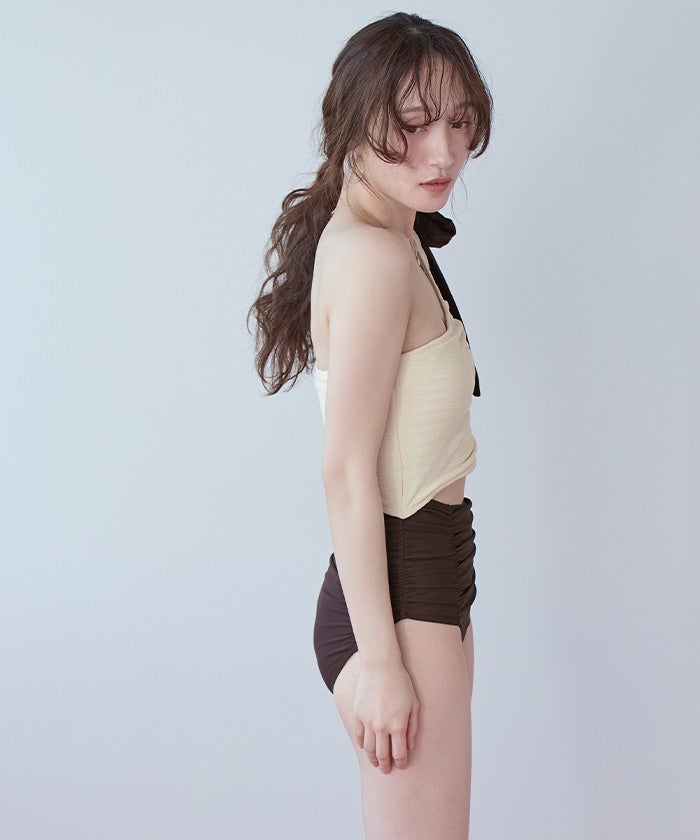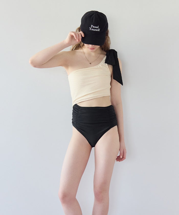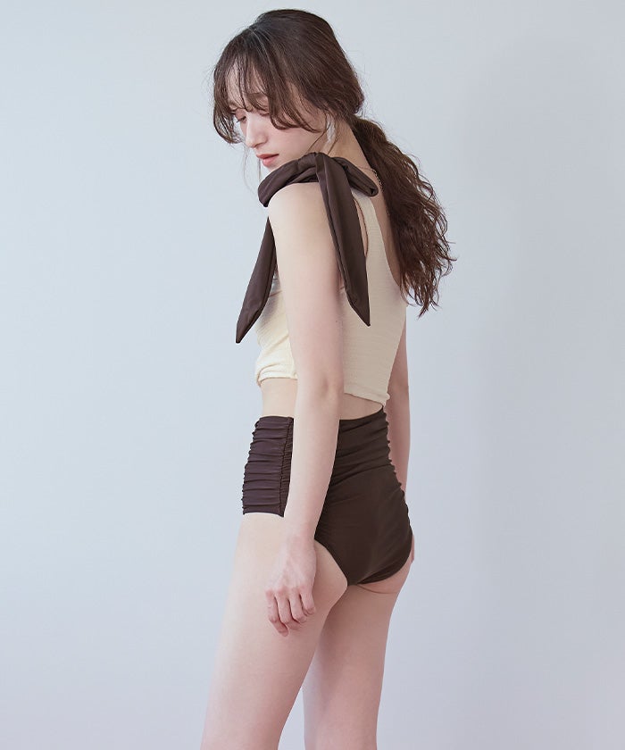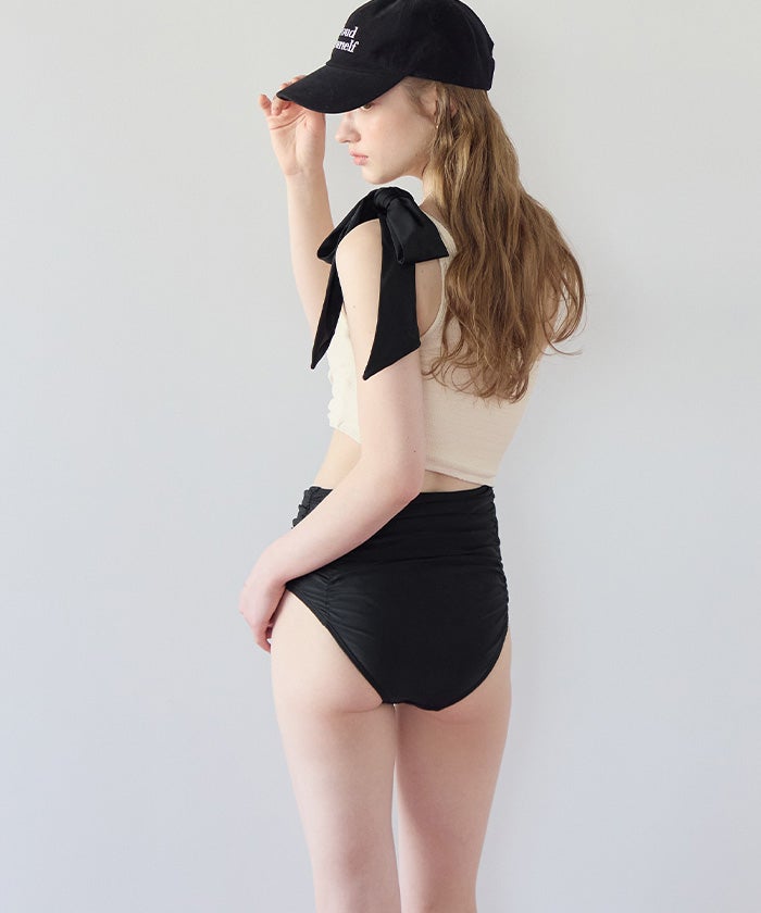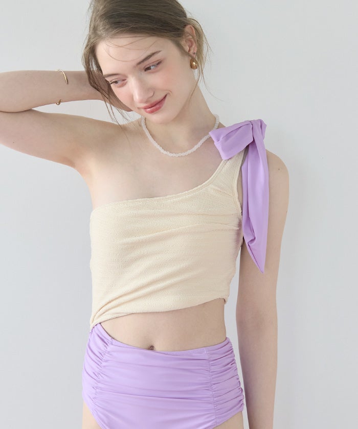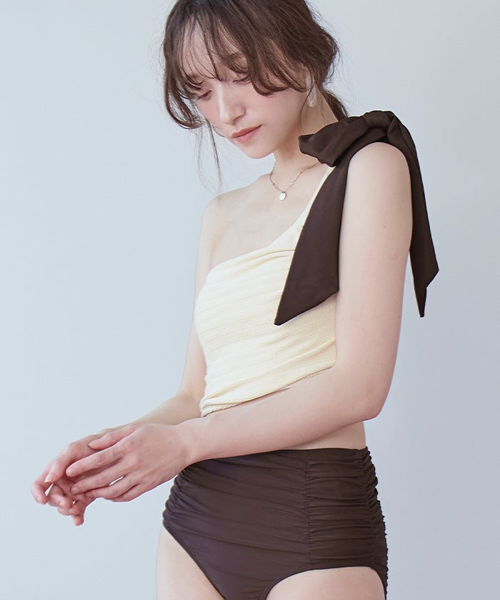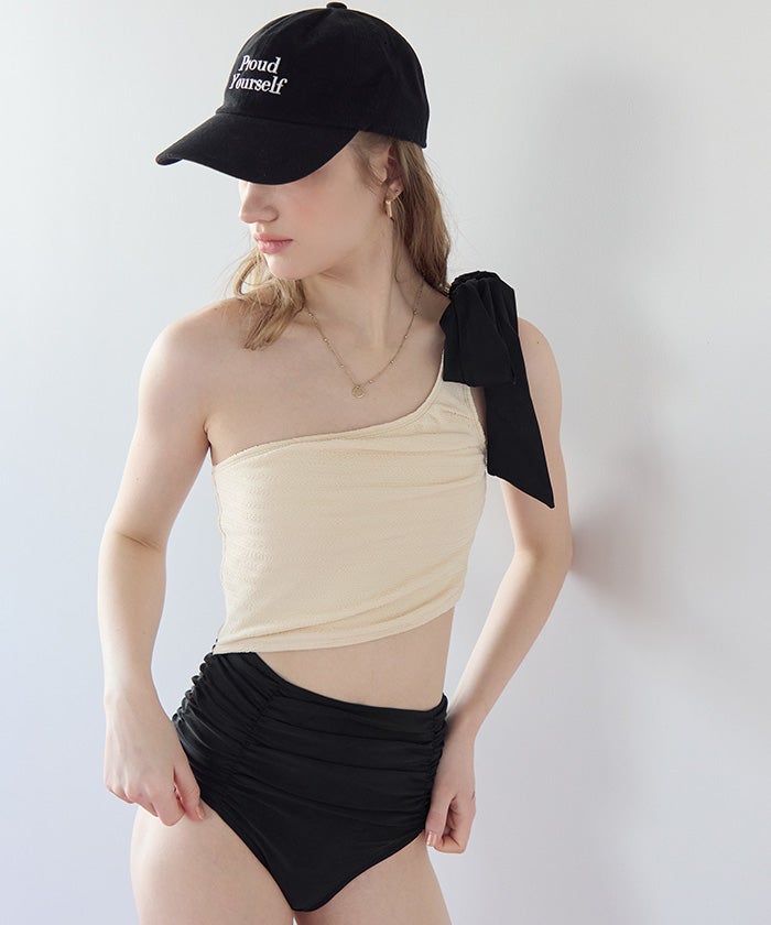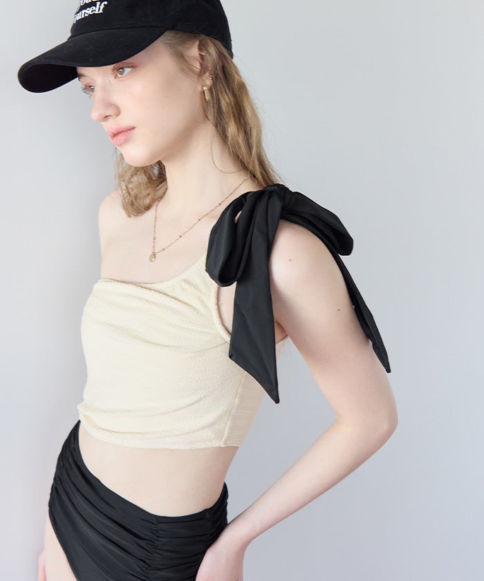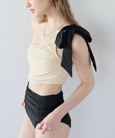 ラッシュガードとスタイリングしやすいように、肩リボンは取り外しの出来る2way仕様。