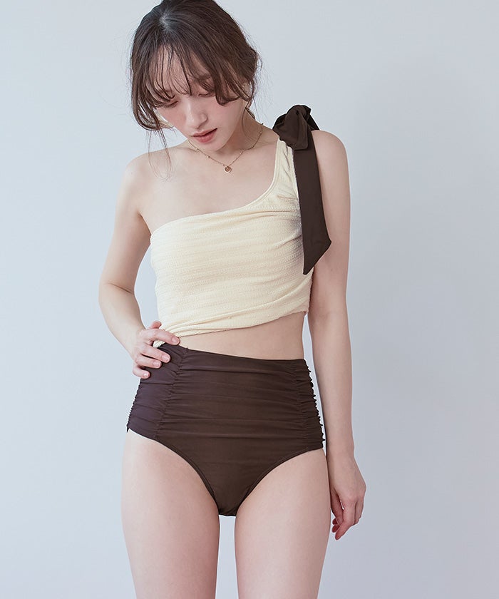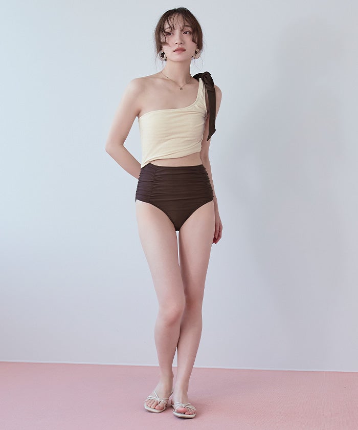 ワンショルダーカットアウトワンピース/水着