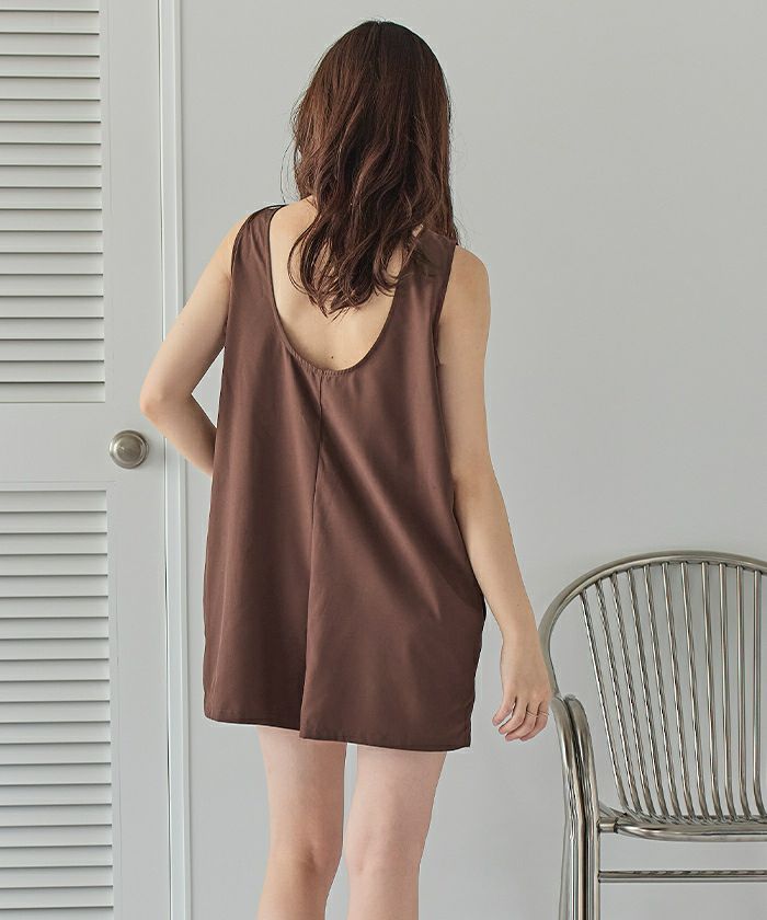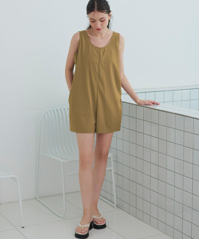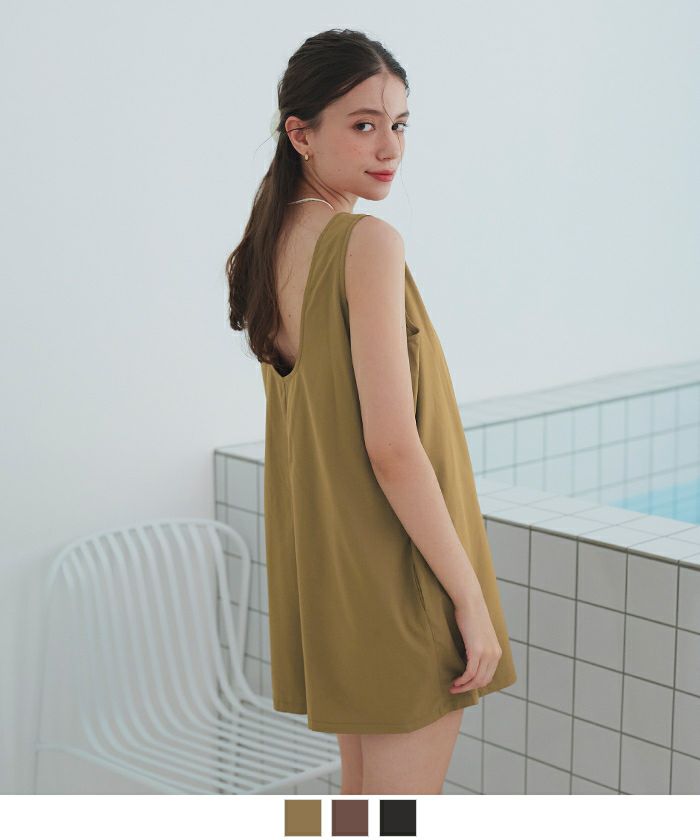 ・服っぽくカジュアルにスタイリングできるロンパースデザインのワンピース水着。
