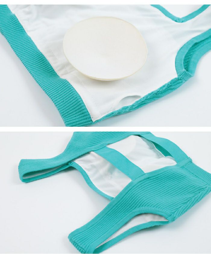 ・リブ編みニット×スポーティデザインの異素材ビキニ。