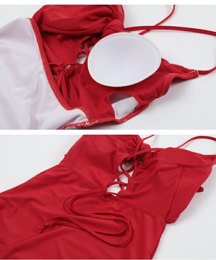バックレースアップデザインワンピース/水着