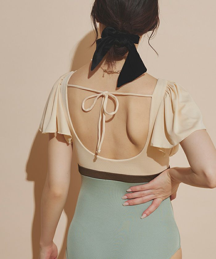 ・デコルテをきれいに見せるカシュクールデザインがポイント。