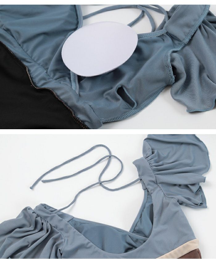 伸縮性のある素材の為、縫製部分を着用程度で伸ばすと多少の糸切れがございますが、仮縫いの糸が切れているため商品や着用に問題ありません。しかし故意にゴム入れ部分やギャザー部分を強く引っ張ると本縫いの糸が切れることがございますのでお取り扱いにご注意願います