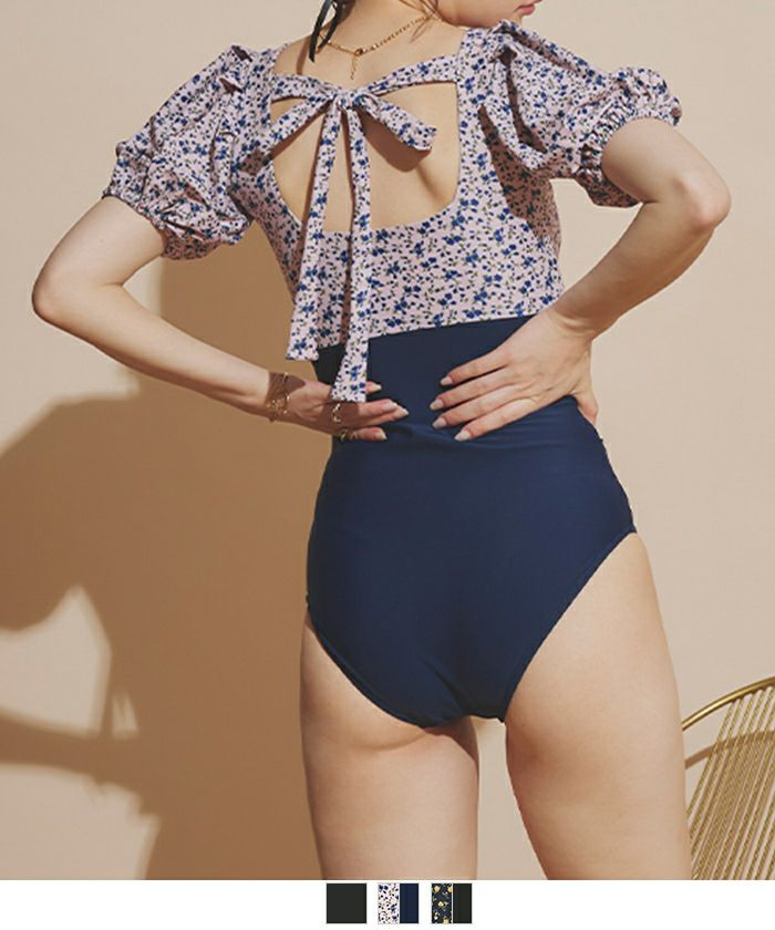 ・シックに着こなせる無地ブラックと、ビーチ映えする花柄デザインからお選びいただけます。