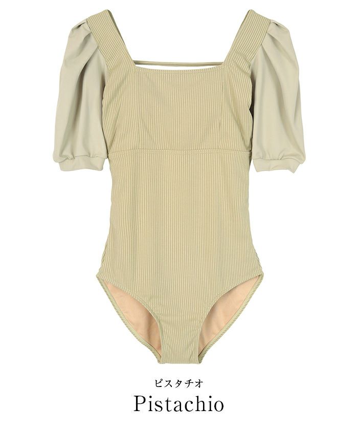 ・きれいめのシルエットでビーチ映えする異素材パフスリーブデザインワンピース。