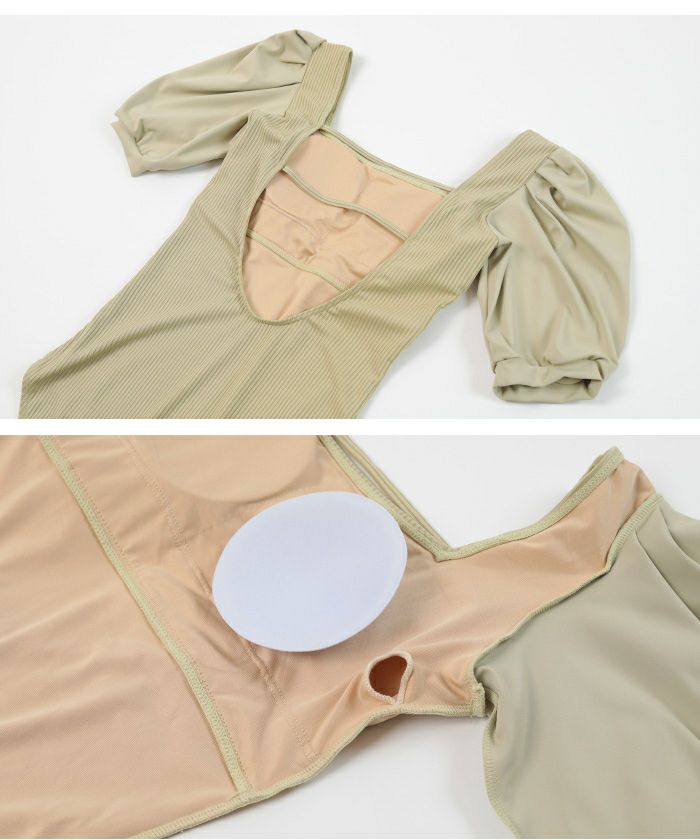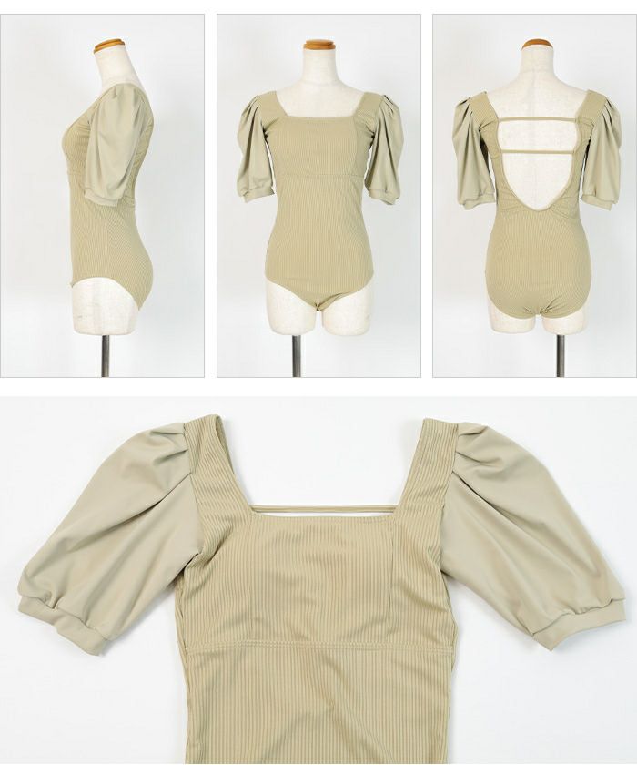 ・ボディ部分は伸縮性の良いリブ素材を使用しており、細見えを叶えます。