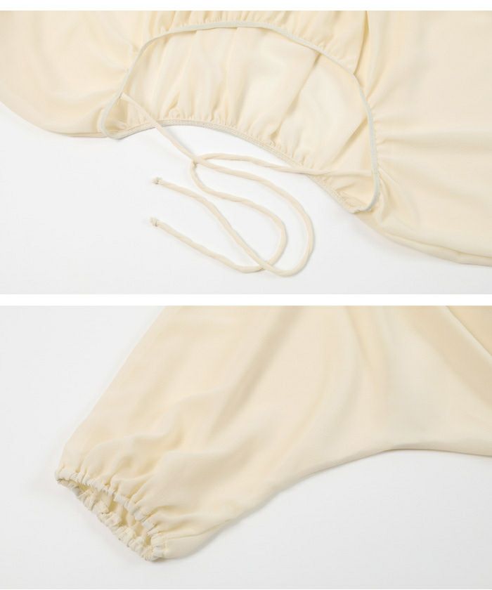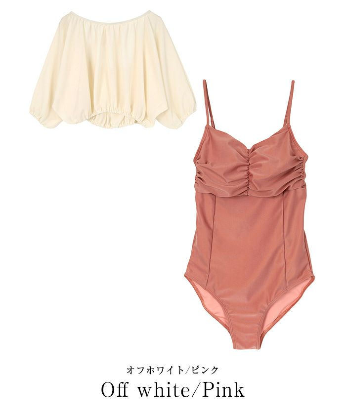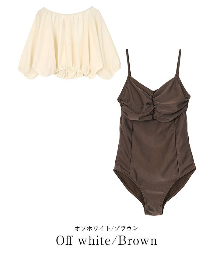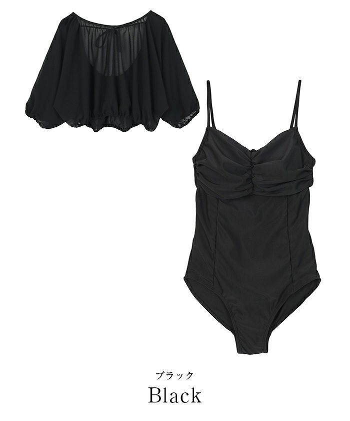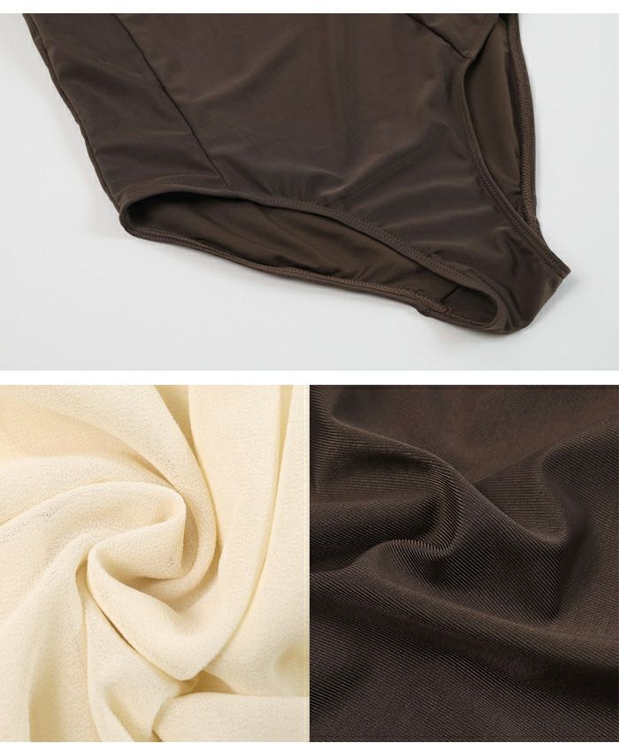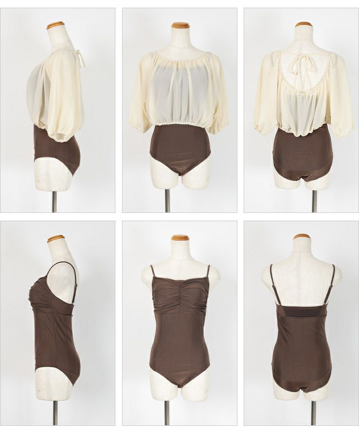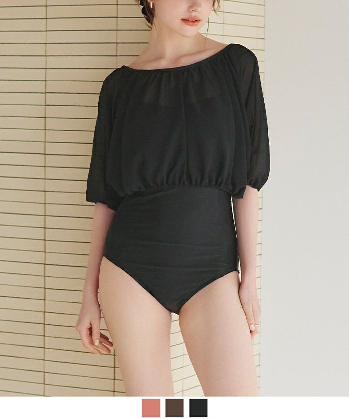 ・柔らかいシフォン素材のシアートップスが大人可愛いカバーアップワンピース水着。