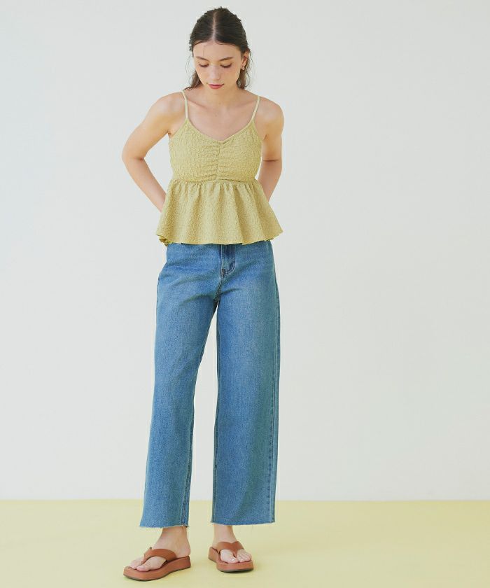 ・ハイウエストショーツの組み合わせでワンピース見えを叶えます。