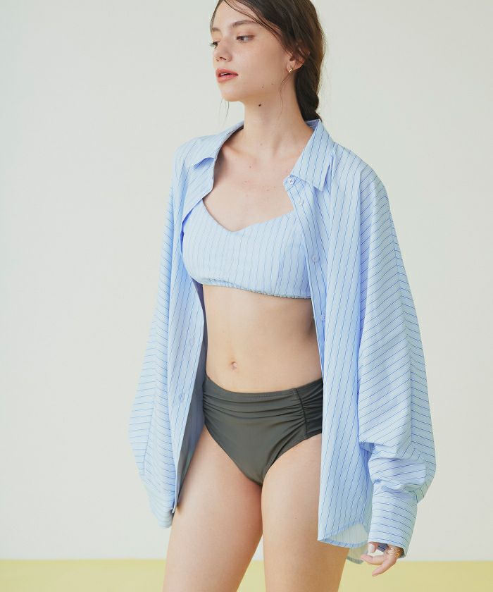 同じストライプ柄の商品展開もあるので、一緒にコーディネートできる水着です◎