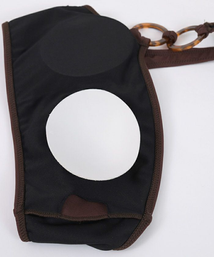 ・ワンショルダー×べっ甲風リングが目を惹く、モードな雰囲気のビキニ。