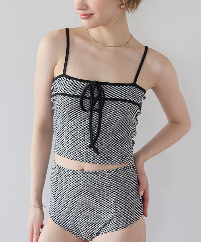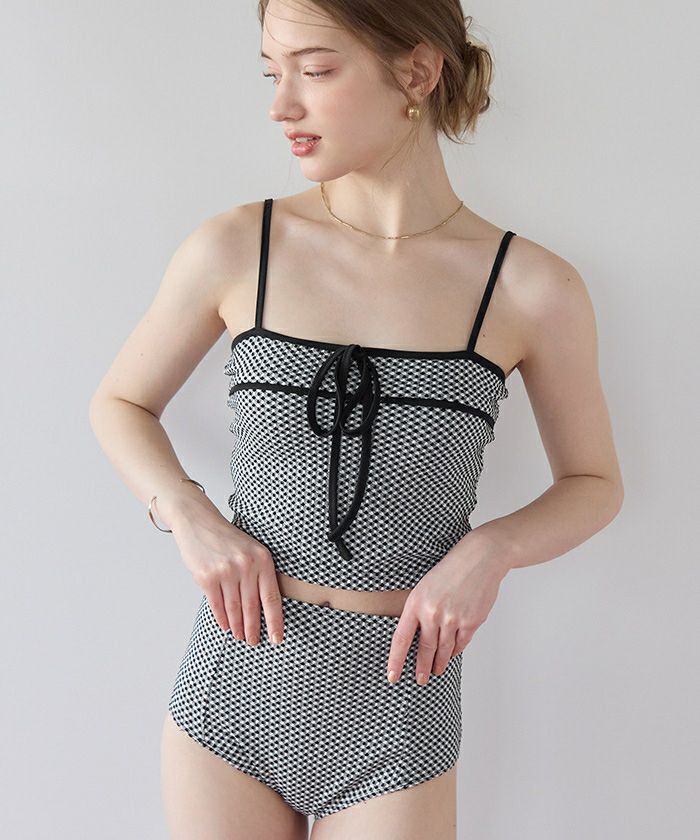 リボンデザインチェックジャガードビキニ/水着【メール便可/100】
