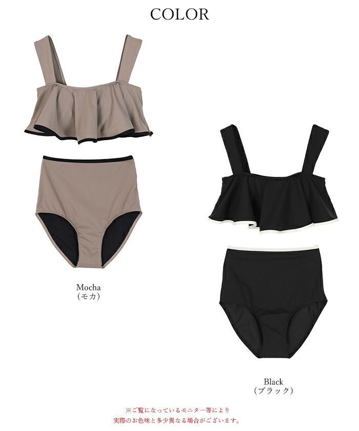 パイピングフリルハイウエストビキニ/水着【メール便可/100】