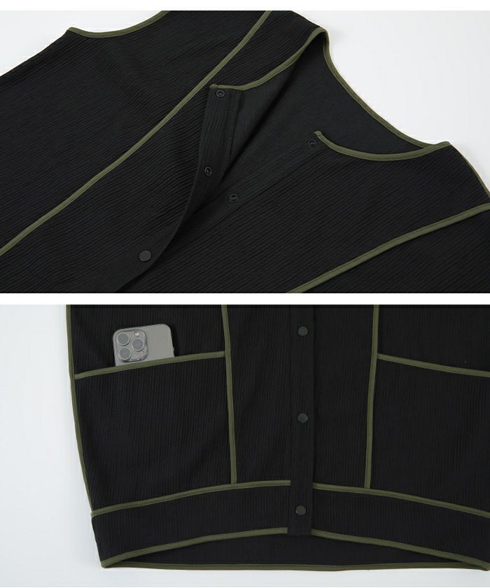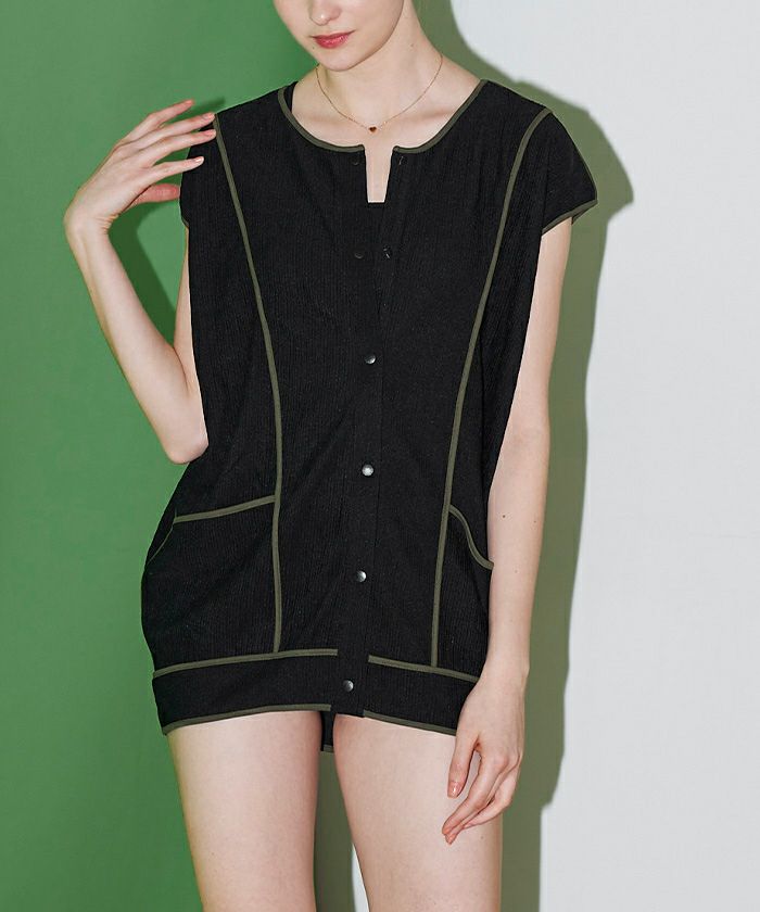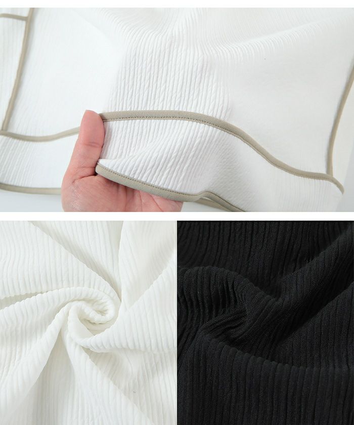 ・肌触りの良いリップル素材×バイカラーのコントラストでリゾート映えを叶えます。