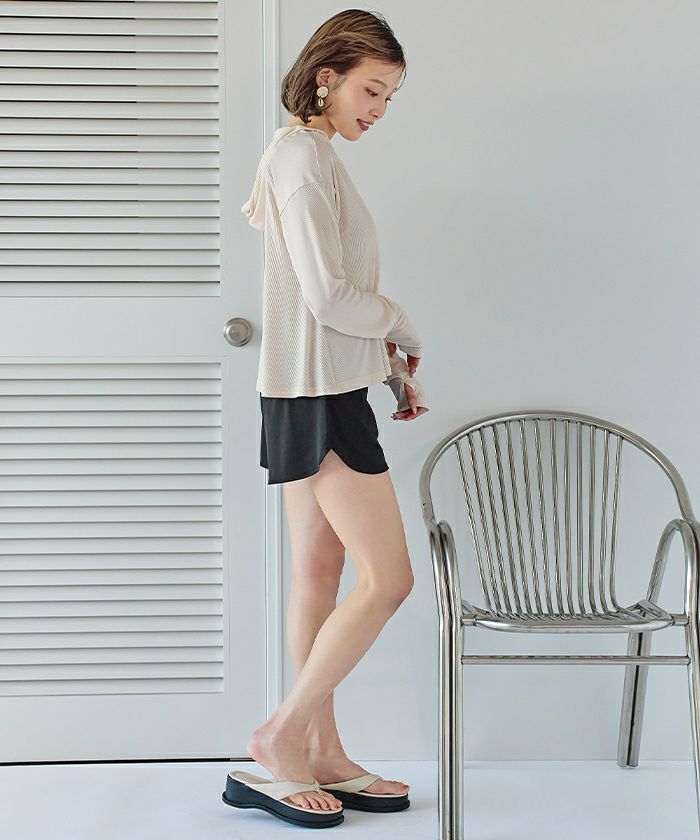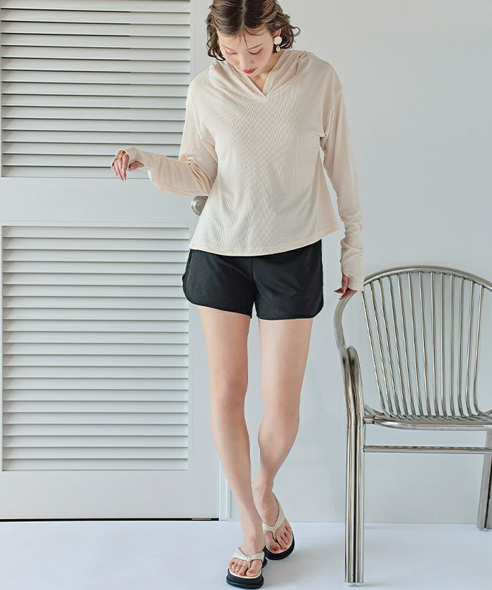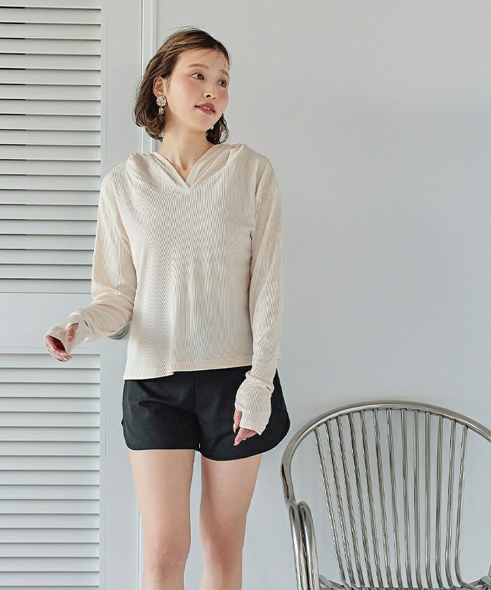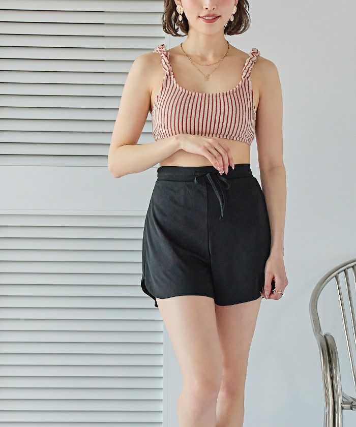 ・速乾性のあるリブ素材で、ビーチだけでなくフェスやレジャーシーンのトップスとしても大活躍な1着です。