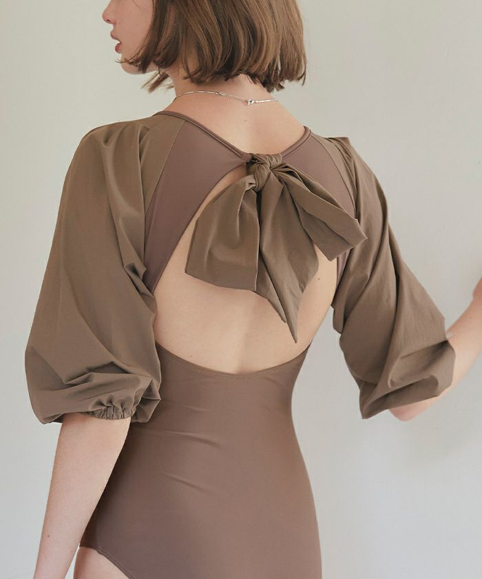 【2024A/W】【ストレート】【ウェーブ】 ビッグリボン×パフスリーブワンピース/水着