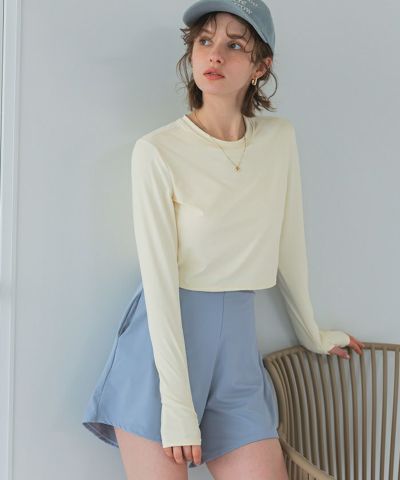 3点セット/ショートパンツ×カップ付長袖ビキニ/水着