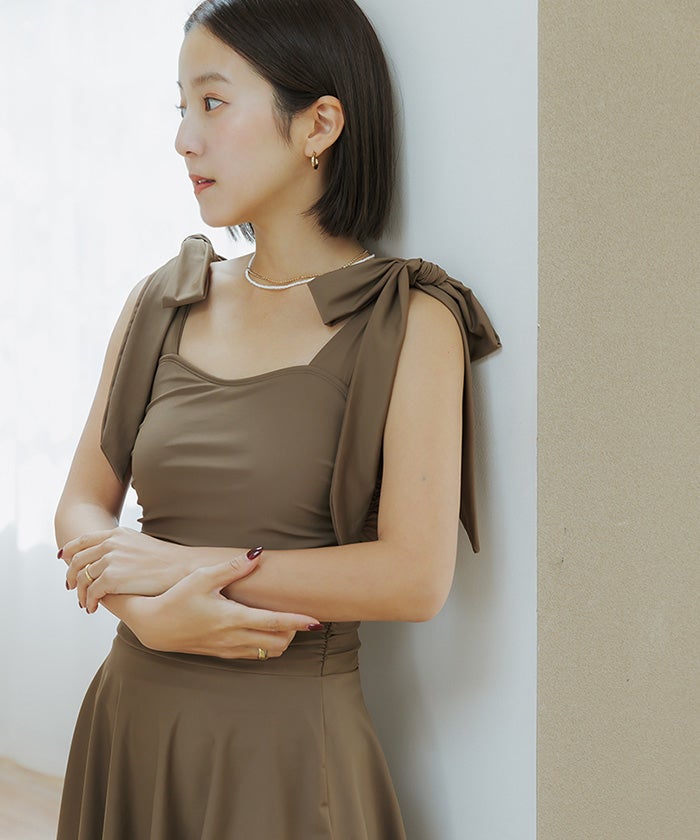 他の画像を見る 【2026S/S】【yuiさんコラボアイテム】【2026年03月27日11時00分 販売開始】【ストレート】【ウェーブ】【ナチュラル】 スカート付ショルダーリボンワンピース/水着 定価 ¥ 5,709 のところ 価格 ¥ 4,852 税込 販売期間 2026/03/27 11:00 〜 2026/04/03 10:59 お気に入りに登録する